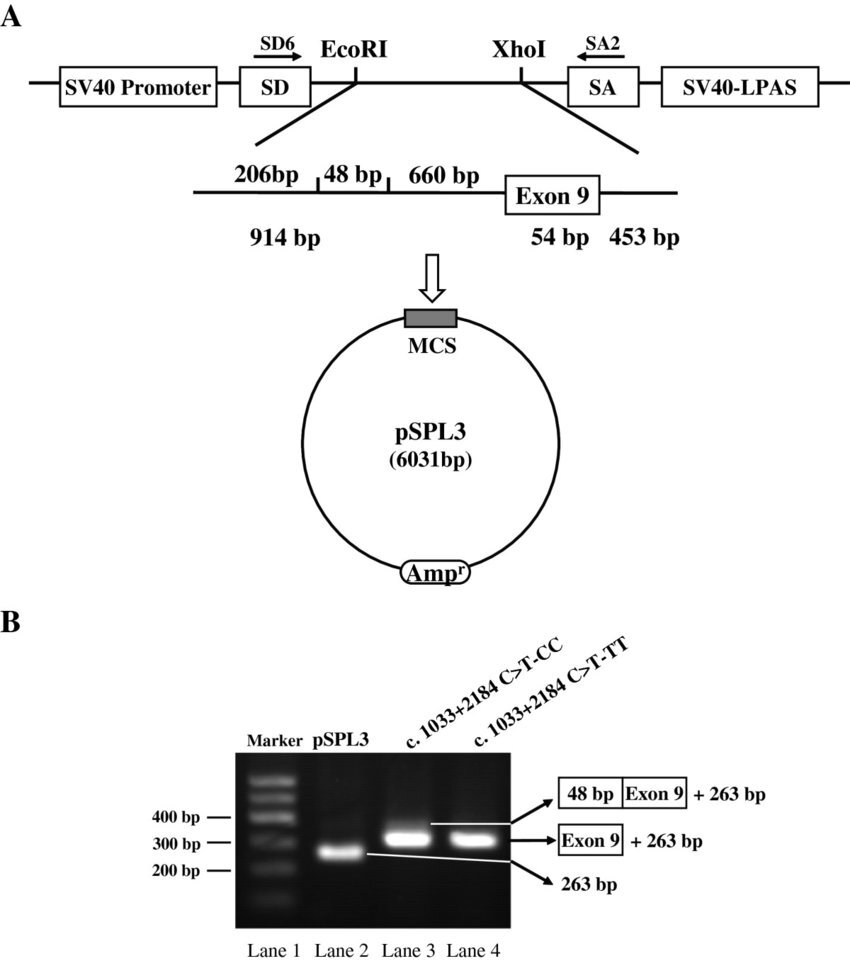 The pSPL3 plasmid (2 µg) is a specialized mammalian expression vector designed for exon trapping and splicing analysis. It features an SV40 promoter and a β-globin exon-intron-exon cassette with engineered splice donor and acceptor sites, enabling the insertion of genomic DNA fragments into its multiple cloning site to investigate alternative splicing events. Ideal for studying gene regulation, validating splicing mutations, and analyzing pre-mRNA splicing, pSPL3 is a powerful tool for molecular biology and functional genomics research.